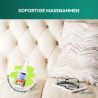Vor Beginn der Reinigung oder des Waschens der Polsterung sollte der zu reinigende Bereich gründlich abgesaugt werden. Dann eine kleine Menge des Produkts direkt auf die Oberfläche sprühen oder es auf einen Schwamm oder ein Mikrofasertuch auftragen und damit den verschmutzten Bereich abwischen. Das Mittel einige Minuten einwirken lassen. Anschließend überschüssige Flüssigkeit entfernen und die Oberfläche mit einem sauberen, trockenen Mikrofasertuch trocknen. Bei hartnäckigen Verschmutzungen eine weiche Bürste verwenden. Nach Abschluss der Reinigung und dem Trocknen der Oberfläche empfehlen wir, diese erneut abzusaugen, um alle Fleckenrückstände zu entfernen. Und schon ist keine Spur von Schmutz mehr zu sehen!