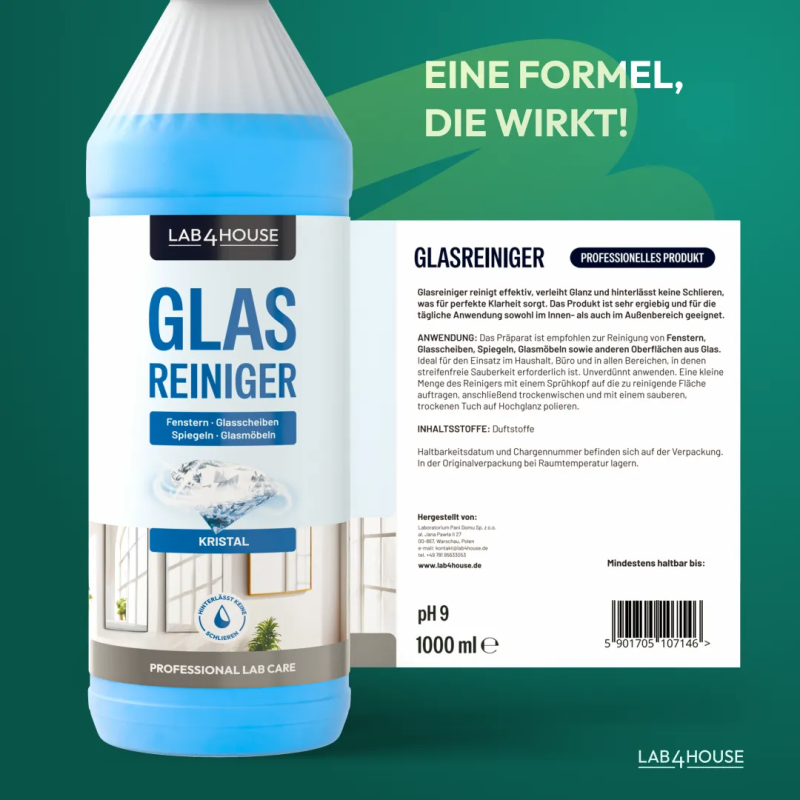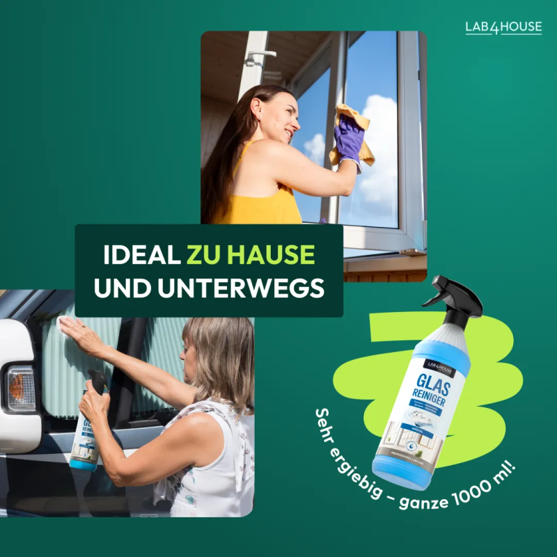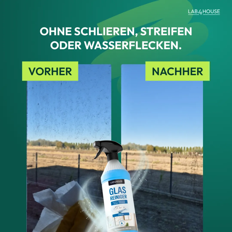 Fenster? Spiegel? Autoscheiben? Glastisch oder Geländer? Fettflecken? Dieser Reiniger reinigt alle Glasflächen. Ohne Streifen. Ohne Wasserflecken. Dafür mit Glanz und einem frischen Duft, der lange anhält.